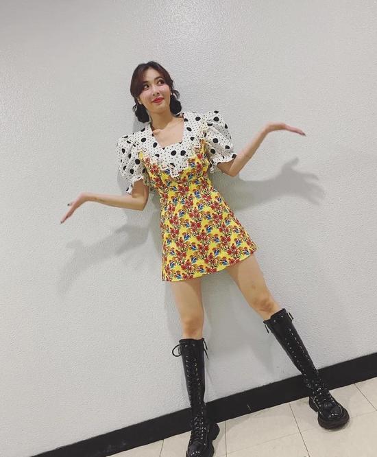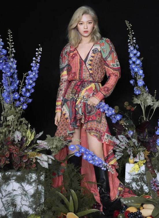 一向走元气少女路线的Twice和OH MY GIRL,都化身西部牛仔,波西米亚风印花裙加上纯色牛仔靴,展现出不同以往的成熟美。