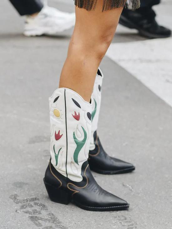 牛仔靴的靴形挺阔,自带“西部牛仔”气质,不管配上什么类型的衣服,都能让你变得“野”起来。
