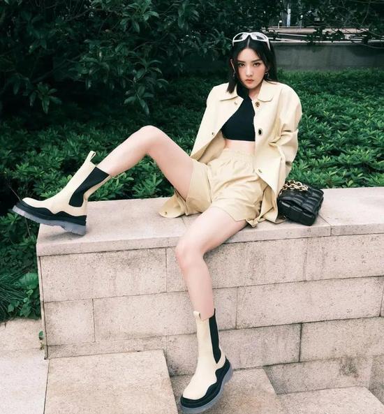 从鞋型上看,烟囱短靴就是加长版的厚底切尔西靴,靴筒高度增加之后,穿起来气场也直接翻倍,从切尔西的温柔甜美挂,进化成潮酷高冷范。