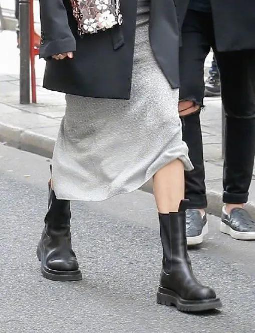 女明星们更是人手一双,毕竟是号称“最显腿直”的一双靴子,靴筒紧紧包裹脚踝,拉长小腿的效果简直一绝。