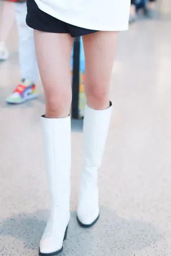 在过膝长靴逐渐被大家遗忘之后,膝下靴悄悄占领了潮人们的鞋柜。比如说“南韩腿精”李宣美钟爱的“烟囱短靴”。
