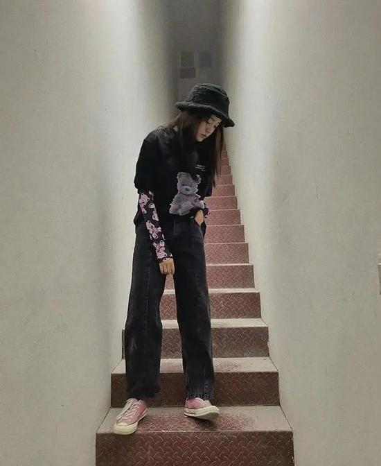 小年轻可以从颜色下手,BLACKPINK姐妹团在穿的磨白款就丰富了阔腿裤的视觉冲击力。