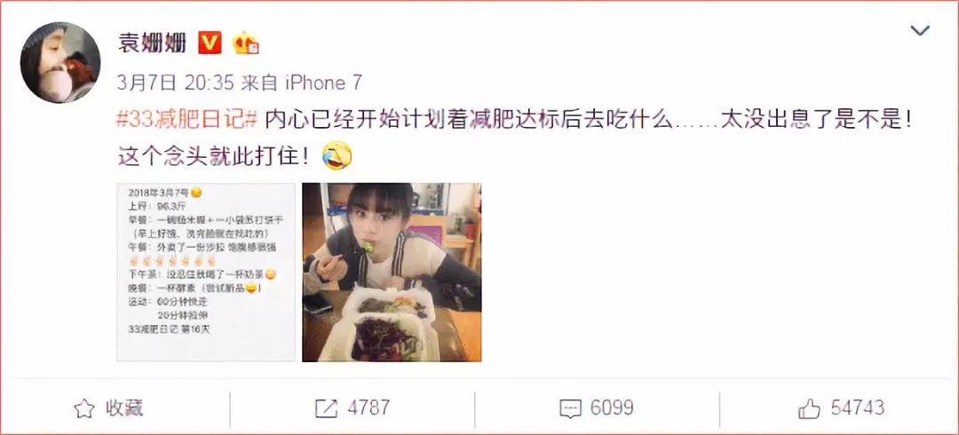 还有一位贪吃的马甲线女王,对,就是袁姗姗!虽然在减肥期间制定了严密的减肥餐,但是天天盼着减肥日的结束。