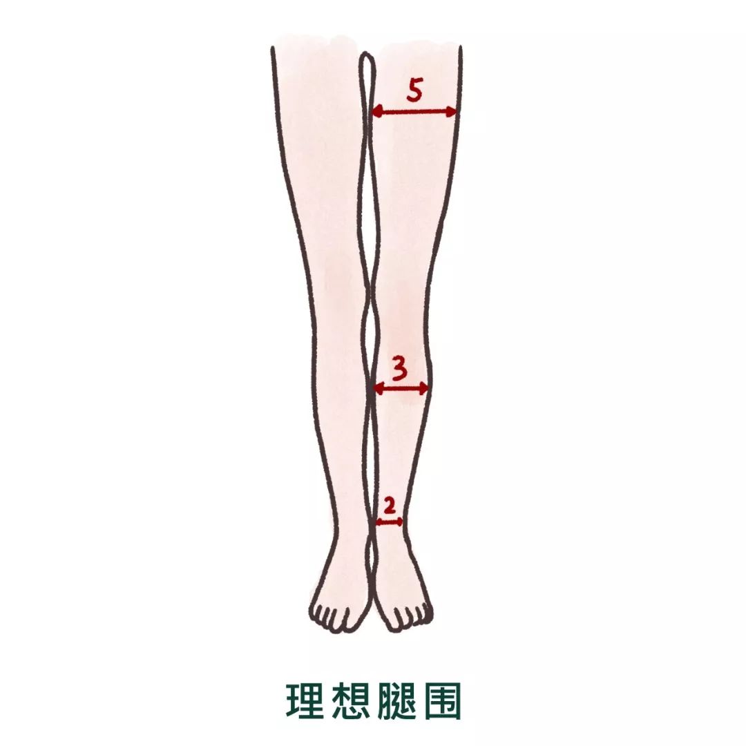 最后这点就更难了。拿出卷尺,来量一量腿围吧。大腿围、小腿围、脚踝围的比值是不是接近5:3:2?四舍五入也算~▼