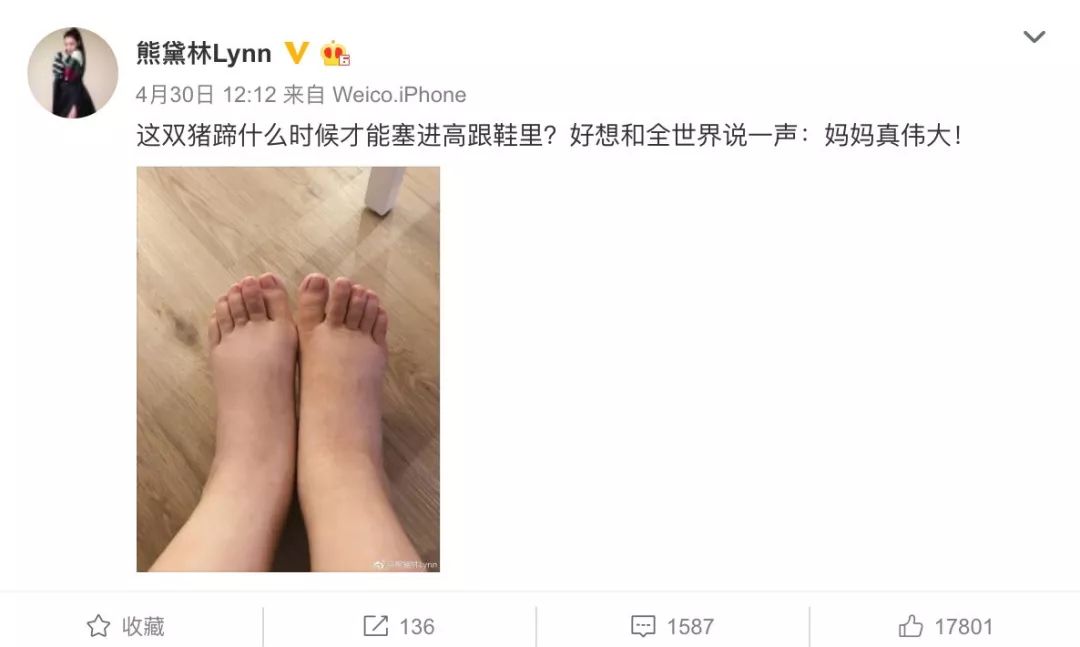 熊黛林前不久就发过一条脚肿的微博。这种情况,过一段时间会自己消失,不用太担心。▼
