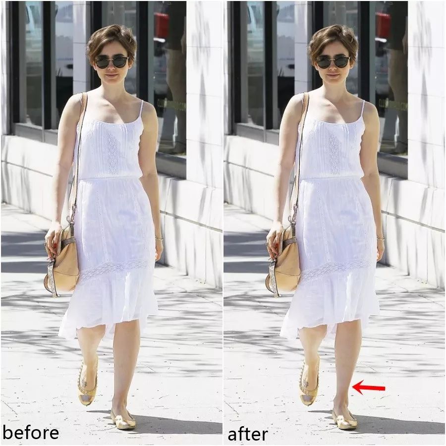 我们把她的脚踝P细了一点点,整个人看起来是不是纤细了一点。▼