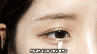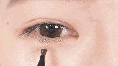 首先可以借助双眼皮叉将卧蚕的轮廓描绘出来,然后在卧蚕下方打上些许阴影(可以用眉笔或者大地色眼影)。