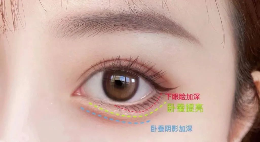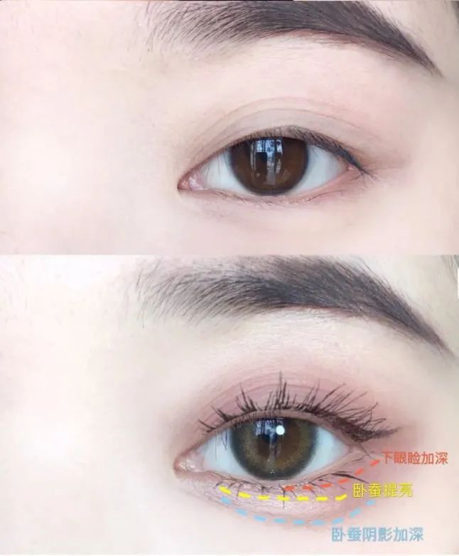 另外,天生有卧蚕但不够明显的小伙伴,可以这样加深卧蚕效果~
