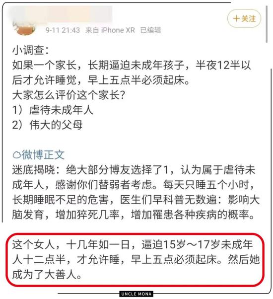“这个女人,十几年如一日,逼迫15-17岁的孩子们早上五点起床,十二点半睡觉。