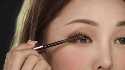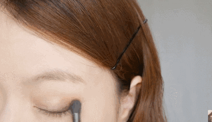 其实如果我们画的多了自然就会有画眼影的感觉了,因为木木的眼睛是一单一双,所以我会贴上双眼皮贴,然后再画上眼影,拿个眼影刷,直接晕染在双眼皮褶皱处,然后再用亮色打在中间提亮,眼影就完成了。