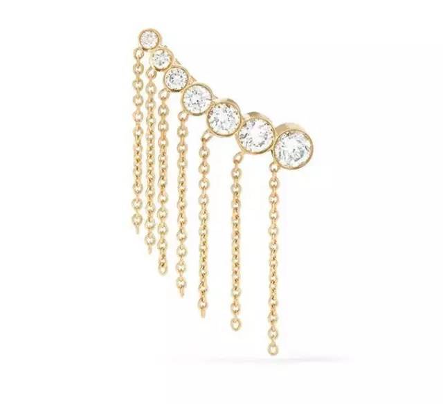 镶嵌钻石或是珍珠的单只耳坠,流线型的设计戴上之后会有飘逸的美感,长短不一的金属线随着步态的移动摇晃,闪着金属特有的光芒,非常吸睛哦!