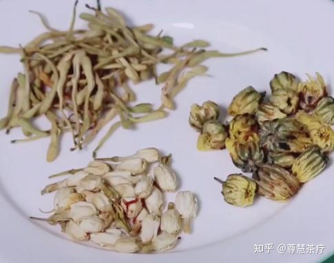 菊花能清热解毒、茉莉花能消肿、金银花抗炎,对于伤风感冒、发热、上火有较好的效果。