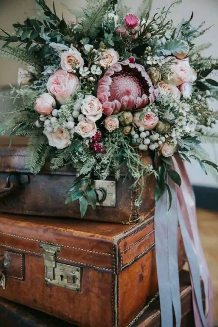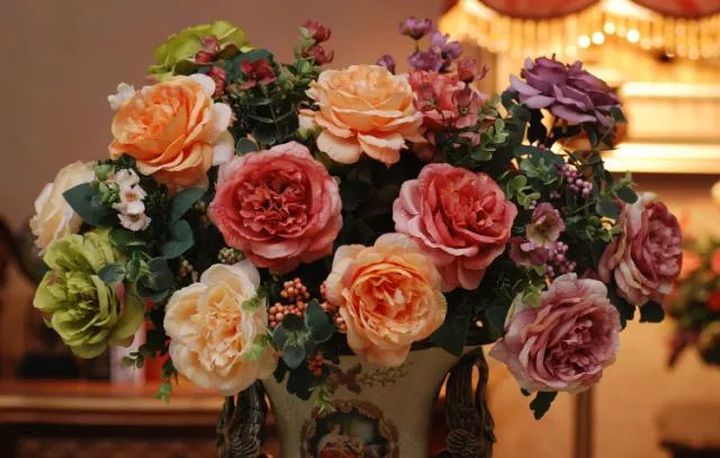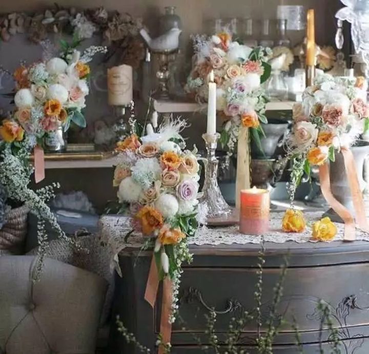 在空间中,用复古花艺作品可以增添古典感和艺术质感。一般像婚礼、西式下午茶、聚会、古典园林装扮、复古风格家居摆设等都适合用复古花艺来装点。