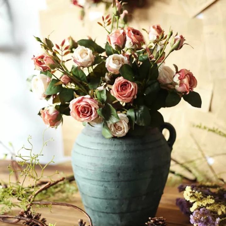 复古花艺的花器极为讲究,一般搭配金属花器、铁器、石器、陶质花器、古典瓷质花器较多。