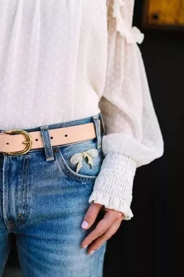 牛仔裤也不用花钱买新款了,加上胸针就像买了条新的呀!