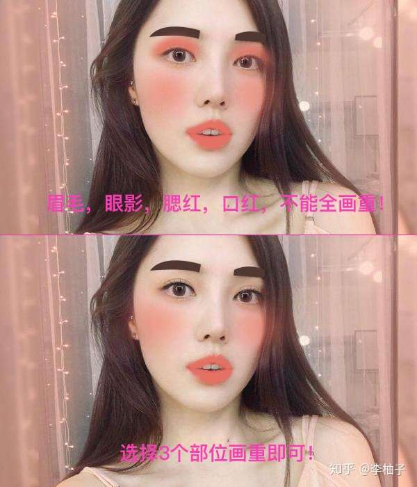 这么说只是给个启示作用,比如眼影可以采用多色,至少腮红和口红眼统一颜色哟!