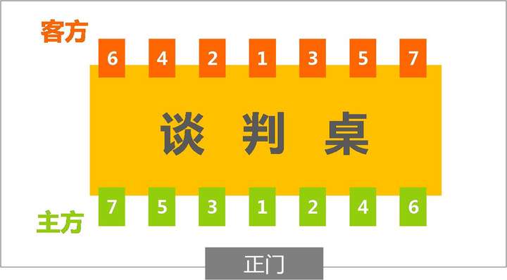 注:主位右侧为主宾位,若主宾身份高于主人,为表示尊重,也可以安排在主人位子上座,而请主人坐在主宾的位子上。