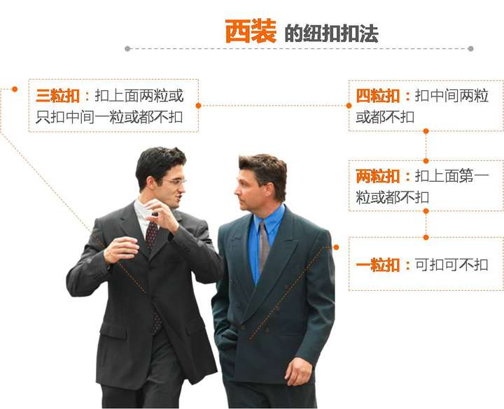 三大禁忌——忌衣袖商标未摘掉、忌西装与皮鞋不相配、忌不打领带。
