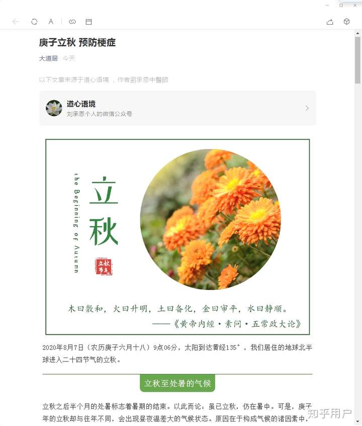 自从我爹开始学中医,他在每个节气到来之前,都会给我发养生资料,让我严格遵循上面来,他说,尊重季节,尊重时令,才能独善其身。这话以前我不信,亲身实践过后,现在我深信不疑。