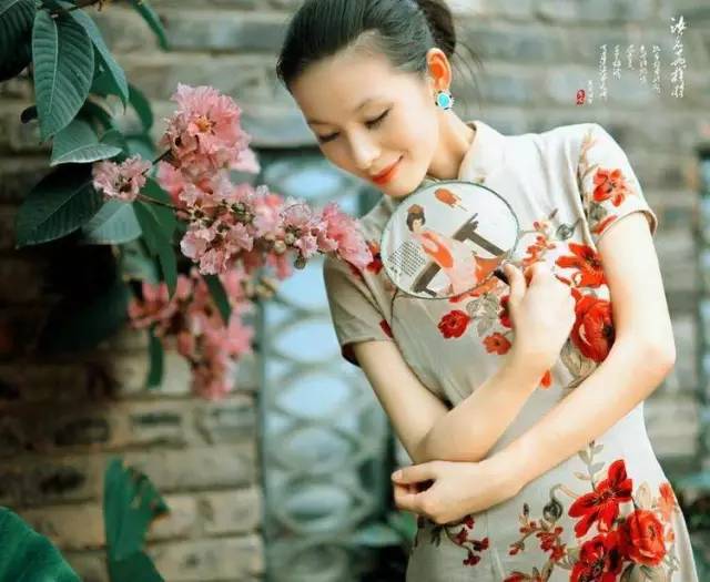 花容月貌,人比花娇,闭月羞花,清水出芙蓉……形容女人如花的词句数不胜数,旗袍女子立于花旁,美上更美。