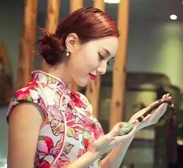 玉纯洁而透明,常被人们又来描述女子的美好品质。旗袍女子知性温柔,灵玉与之相得益彰。