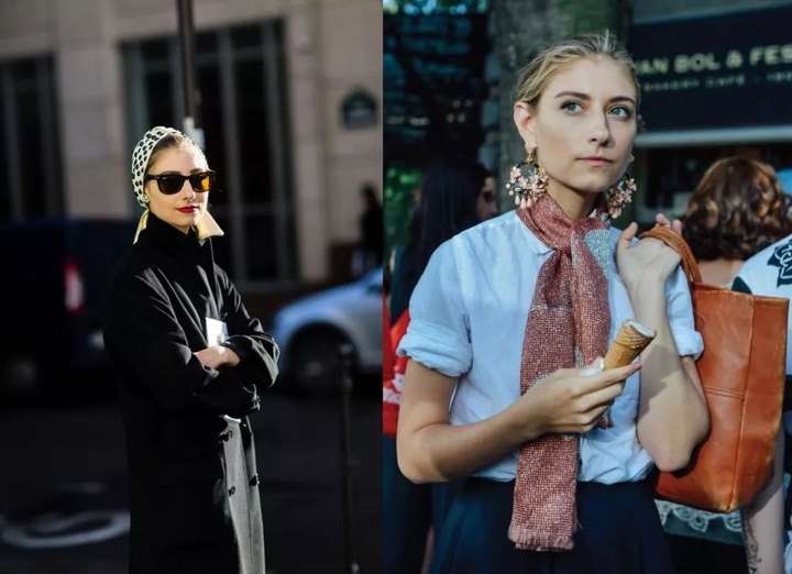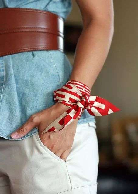 ➋丝巾可以出现在你想不到的很多地方,比如手腕、头上、腰上......