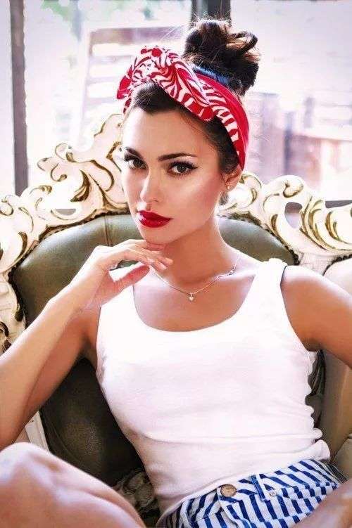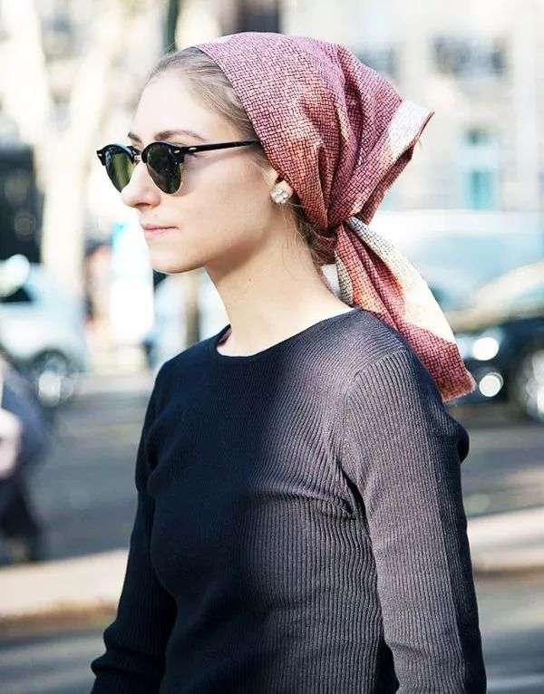 ➤头上包丝巾适合在海边旅游的时候凹造型哦,如果你有细边丝巾,可以像下图这样把丝巾绕在头上也很好看。