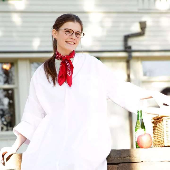 红色丝巾对整体穿搭起到点缀作用,前提是整体的服装颜色不能太多,其实基础款基础色搭配红色丝巾已经很好看了,适用于日常。