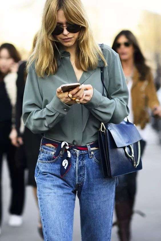 ➤如果临时忘记带腰带了,丝巾也可以充当腰带,是不是特别有新意。