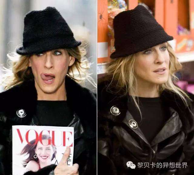 《欲望都市》女主SJP是典型的马脸星人,她在该剧中戴的最好看的是鸭舌帽,因为扁平而又略宽的鸭舌帽帽檐刚好可以遮住长脸。