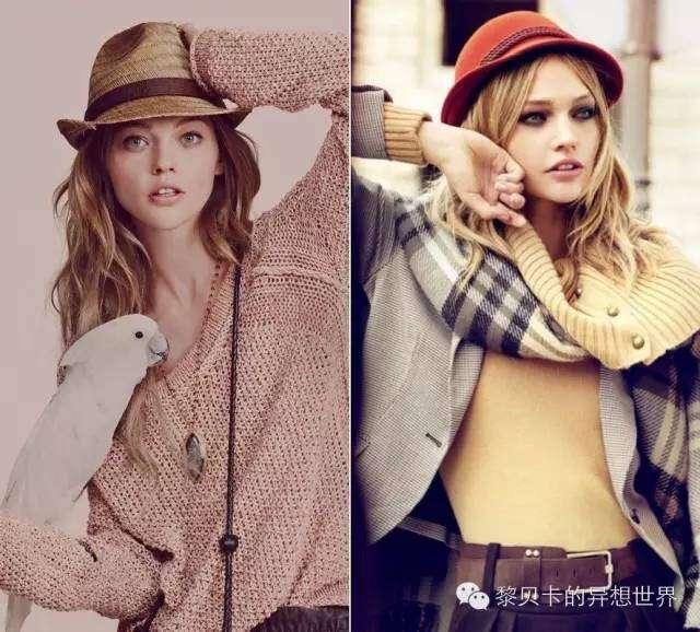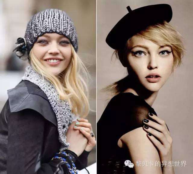 钻石型脸除了脸颊相对较宽以外没什么显著的缺陷,选择帽子的余地很大。超模Sasha Pivovarova戴过各种帽子,几乎不会出错。▼