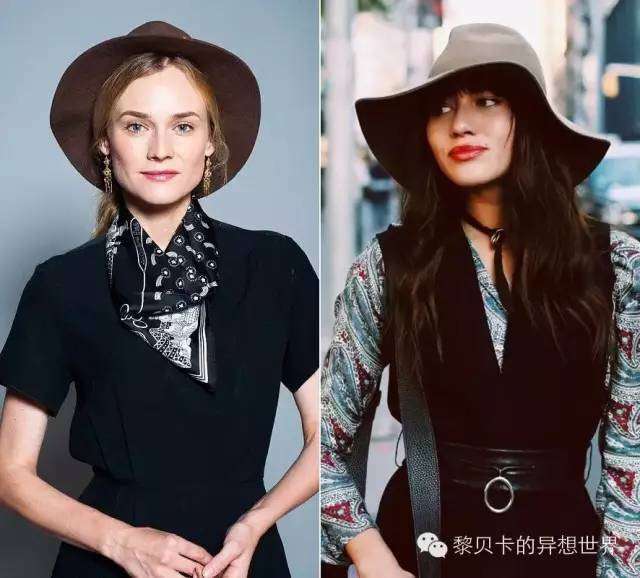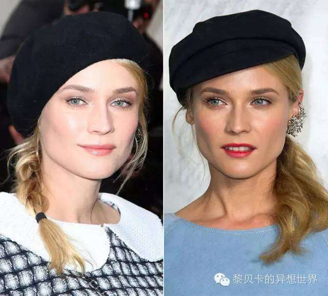 标准方脸星人Diane Kruger深知脸型和帽子的搭配之道,她最喜欢斜斜地戴着帽子,稍微遮挡一下额头的棱角,脸看上去立马就柔和很多。