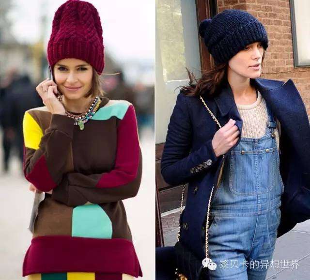 长脸记得避免一切拉长脸部线条的帽子,同样的针织帽,圆顶的也比尖顶的适合。对比一下。