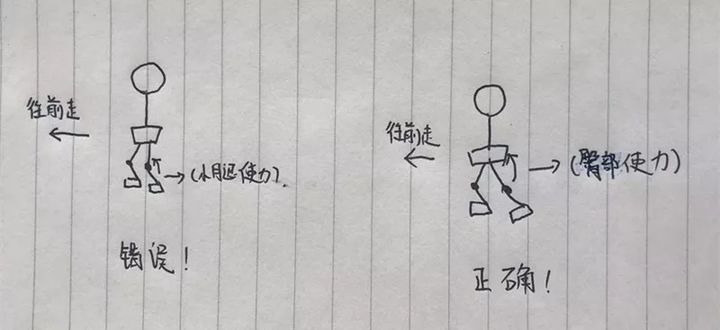 通俗来讲就是:总是小腿在工作,臀部与大腿总是在偷懒不工作,每向前一步,都是依靠小腿来推动,这样小腿能不粗才怪呢!(AT君水平有限,画得太差请大家多多包涵)