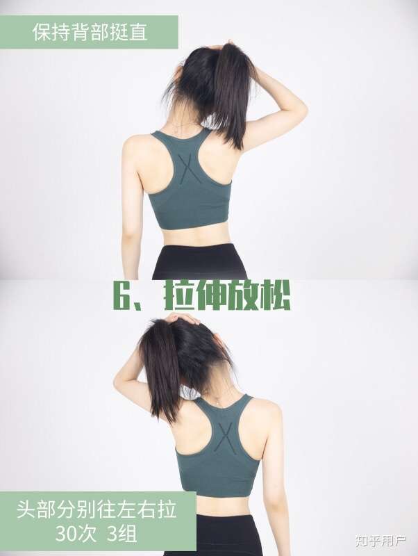 保持背部挺直,头部往右边、左边分别倾斜。感受颈部和手臂的拉伸感