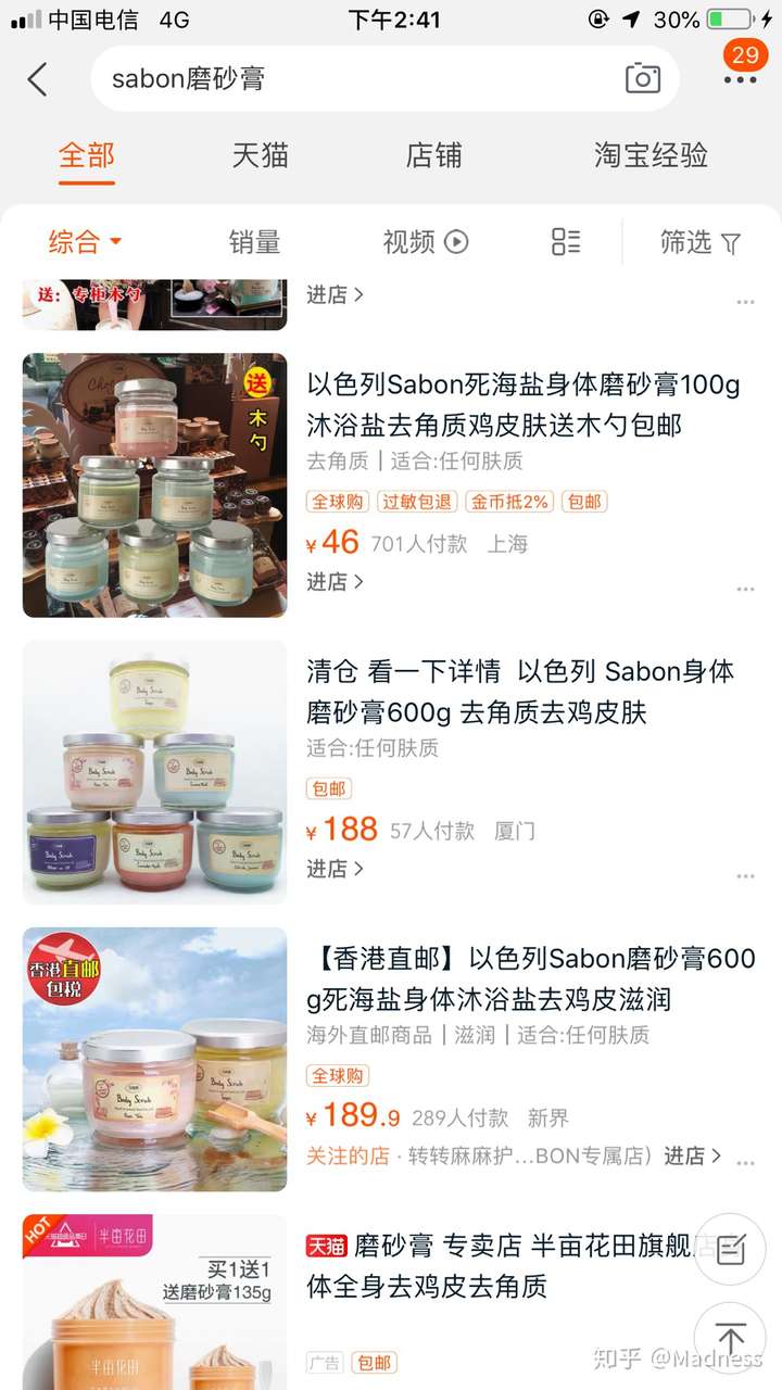我现在再用的是sabon的身体磨砂膏,不刺激而且真的好用!某宝上有卖分装的,可以先来个分装试试,四五十块,因为我觉得一个小分装都可以用挺久的,我超爱奇异果味的真的好闻死了,而且留香很久的,这款磨砂膏是精油和浴盐组成的。麝香味的也特别好闻!简直了婊婊的味道