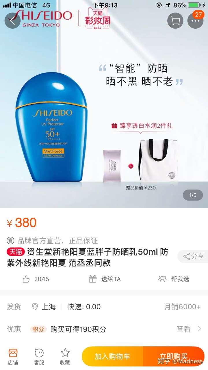 1.我第一个推荐的就是 资生堂蓝胖子防晒