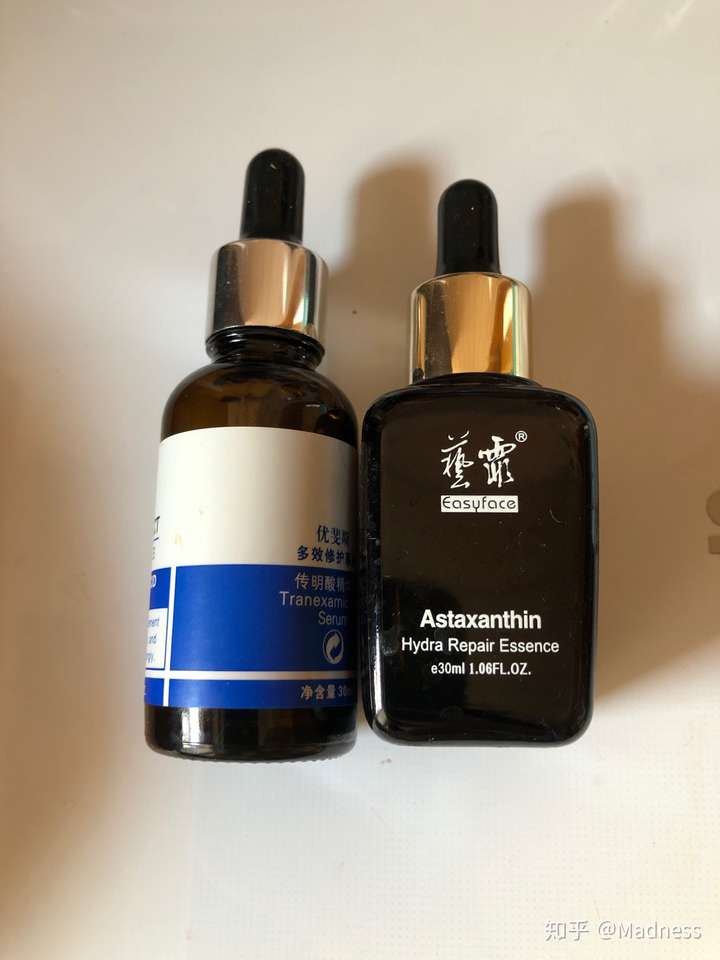 传明酸搭配虾青素更好,基本现在卖医美的都有虾传套餐,虾青素主要是抗氧化保湿的,也有提亮作用,简单粗暴美白这方面我更倾向选择传明酸。这两个精华主要是从各方面,提升你的皮肤,感觉皮肤的免疫力啊,水油平衡,红血丝这些都有所改善