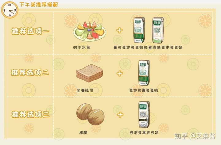 原味豆奶保留了最本真的口感,适当的糖分可以补充下午消耗的能量;你还可以自制一杯简单的豆奶拿铁,在一杯豆本豆青豆豆奶里倒入一份浓缩黑咖啡,无需加糖,就可以获得一杯时尚又好喝的豆奶咖啡。