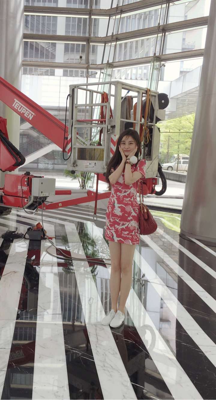 放心地穿运动鞋吧。开但挖掘机升降机还是不要穿超短款旗袍了:)还有胖了也可以考虑不穿:(