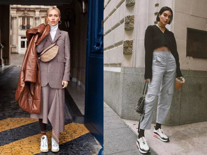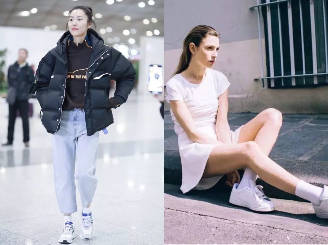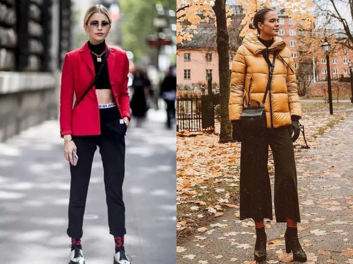 如果你生活在温暖的南方,冬天里喜欢光腿穿运动鞋的话,建议要么搭配长度在小腿以下的短袜,要么搭配长过衣服下摆的长袜。⬇