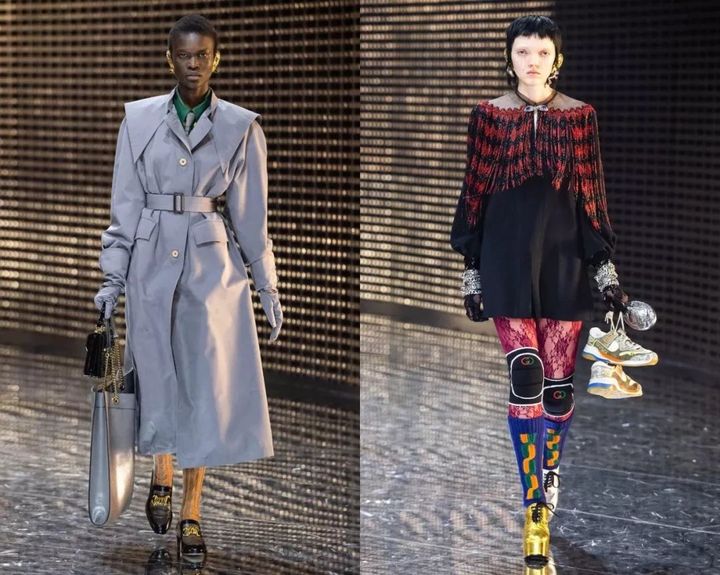 而在GUCCI 2019秋冬系列的秀场上,彩色毛线袜与各种鞋型的奇妙组合更是将怪诞与梦幻发挥到了极致。⬇
