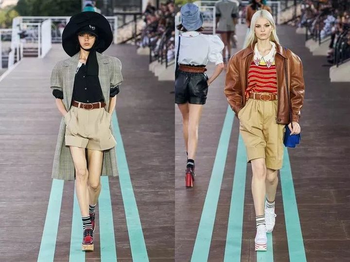 同样也宠幸了毛线袜的还有Miu Miu的2020早春度假系列。经典的条纹袜和厚底鞋搭配在一起,休闲又实穿。⬇