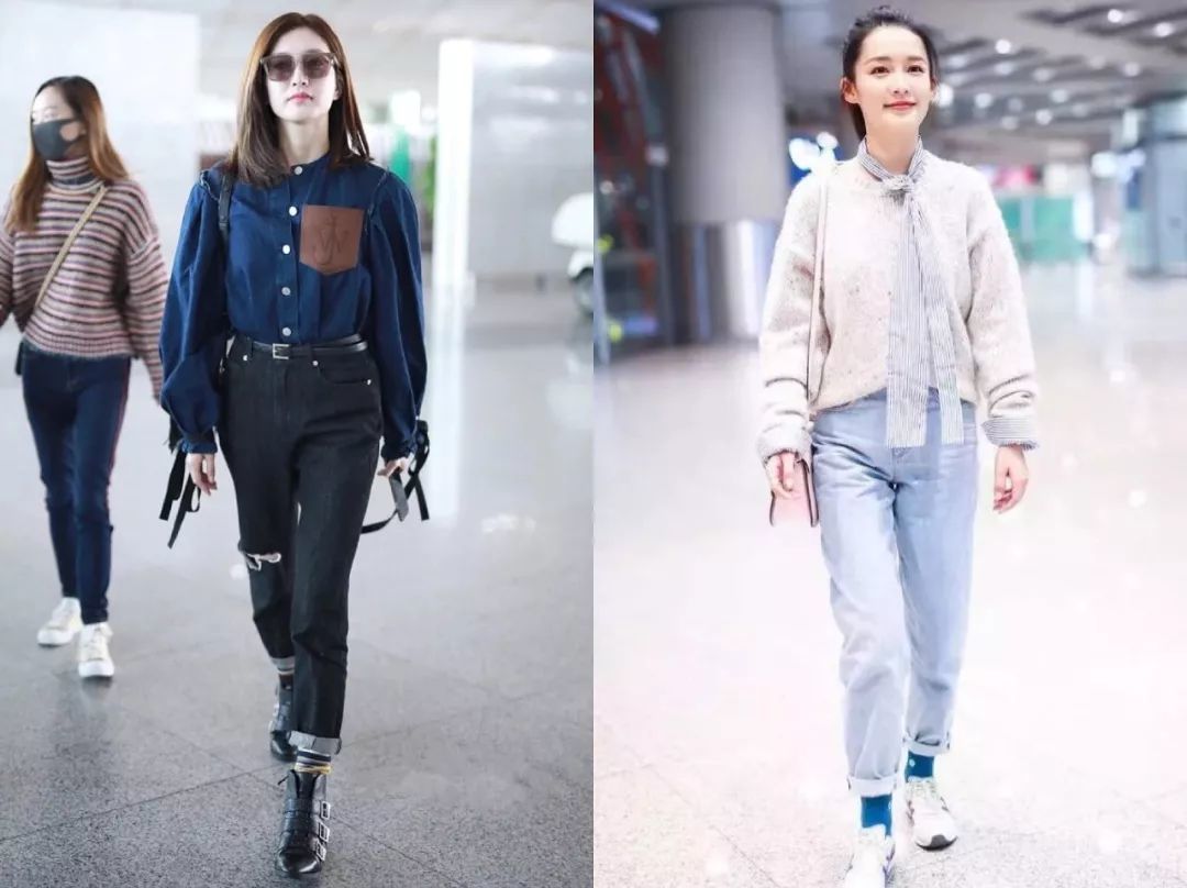 如果对色彩搭配不是很敏感的话,像杨幂或者吴谨言一样,选择一双边缘为黑色或者是白色的袜子就可以了,百搭不出错。⬇