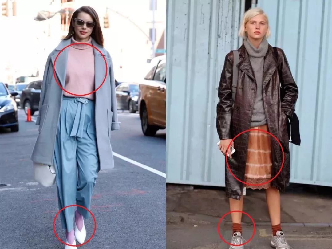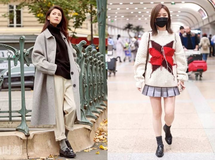 一来,露脚踝的穿法今年实在是不流行了,二来,穿双袜子怎么也能挡点风,聊胜于无嘛。