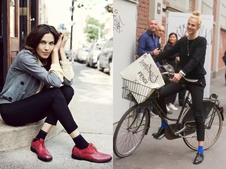如果你喜欢在冬天里穿类似于牛津鞋那样的小皮鞋的话,建议大家选择颜色较深的素色袜来进行搭配。