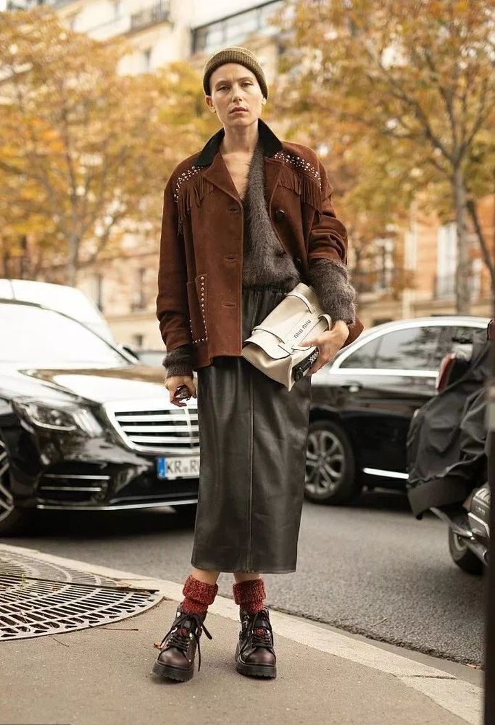 要么,就选择一双和靴子同一色系的袜子,二者搭配在一起可以形成一个色彩层次。⬇