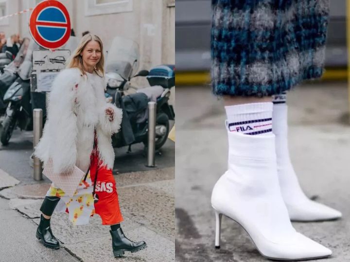 总之,无论是凉鞋、拖鞋、运动鞋,还是靴子,只有你想不到的,没有袜子hold不住的鞋。