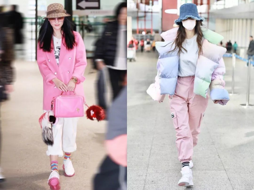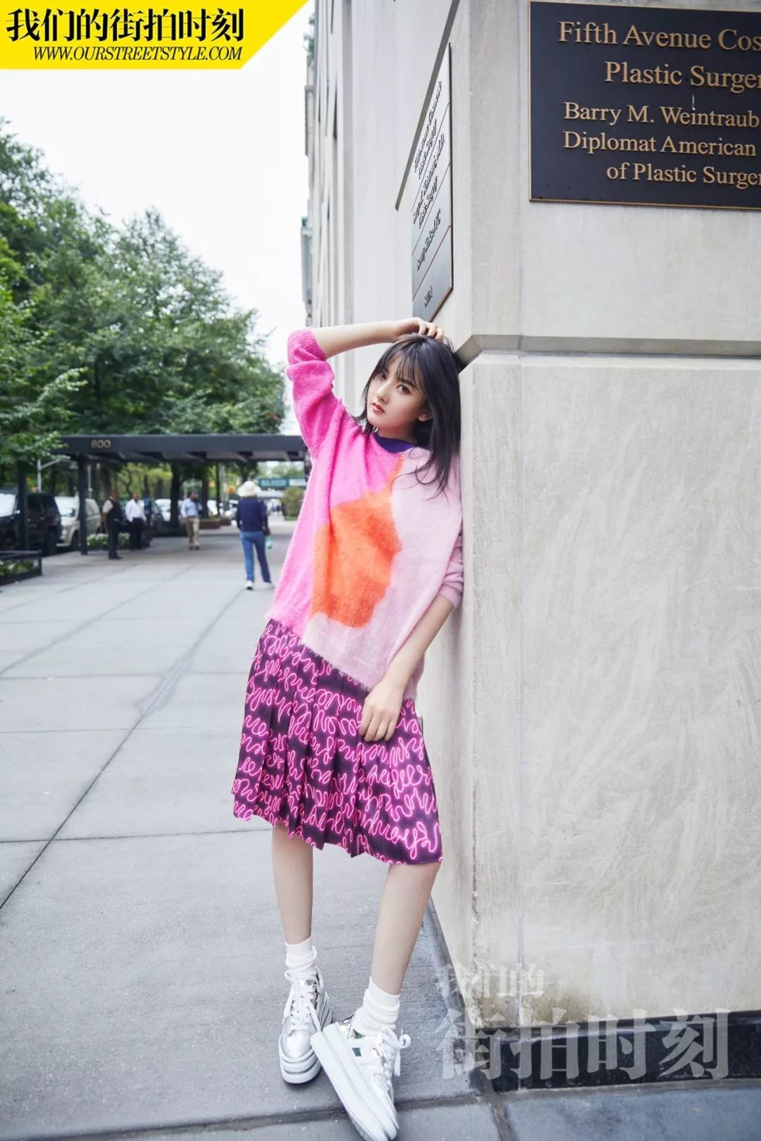 即便是像钟楚曦这样一粉一绿不对称地出街,也只不过是恰到好处的夸张而已。⬇