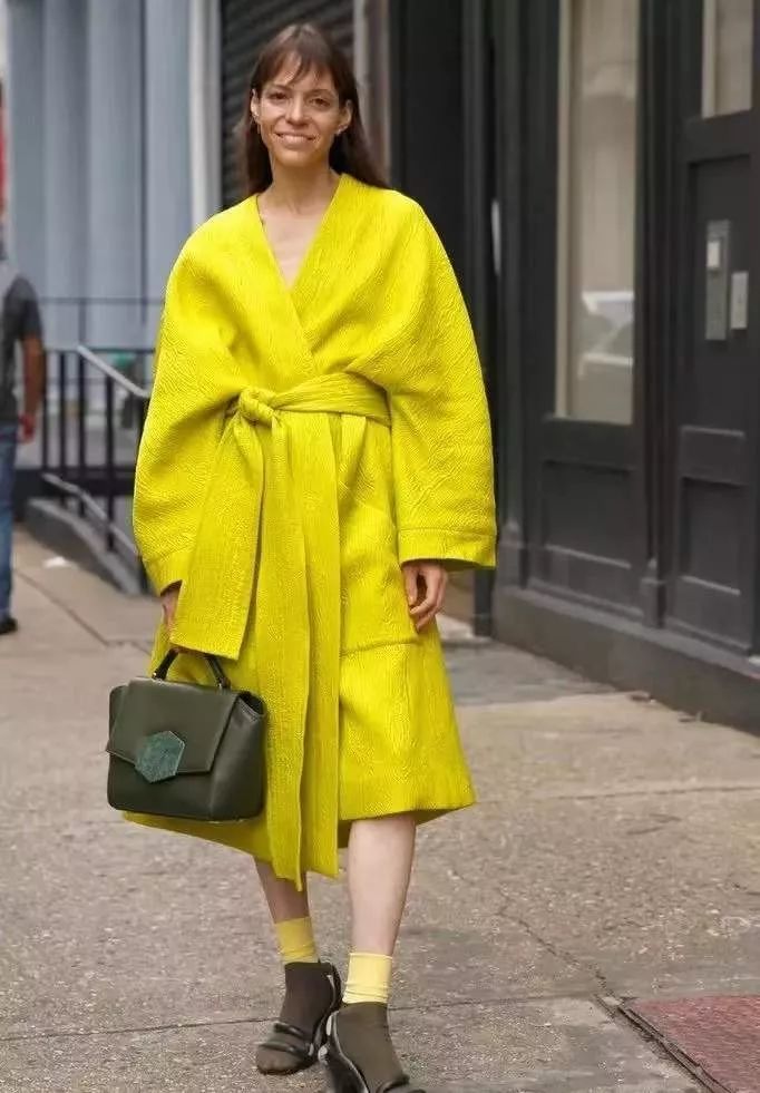 如果喜欢鲜艳一些的袜子的话,要么,像傅菁一样,让袜子边缘部分的颜色和衣服中的某种颜色形成呼应。⬇